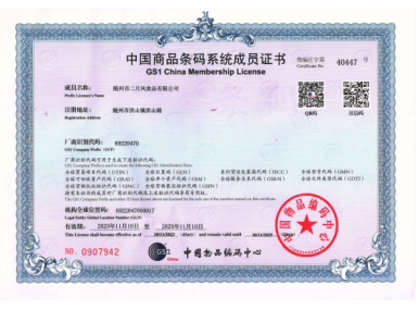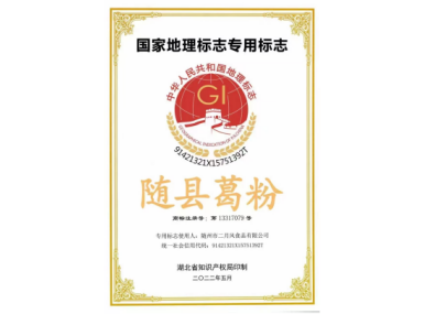 隨縣葛粉地理標志證書